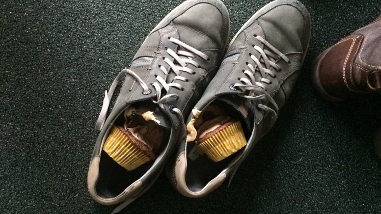 Dann konnte die Reise auch schon losgehen. Aber erst nachdem wir uns nach einem Lachflash wieder beruhigt hatten, weil Tobi versehentlich zwei der Cupcakes in BEIDE seiner Schuhe fallen ließ. Glaubt‘ ihr nicht? Wir zuerst auch nicht, aber seht selbst…