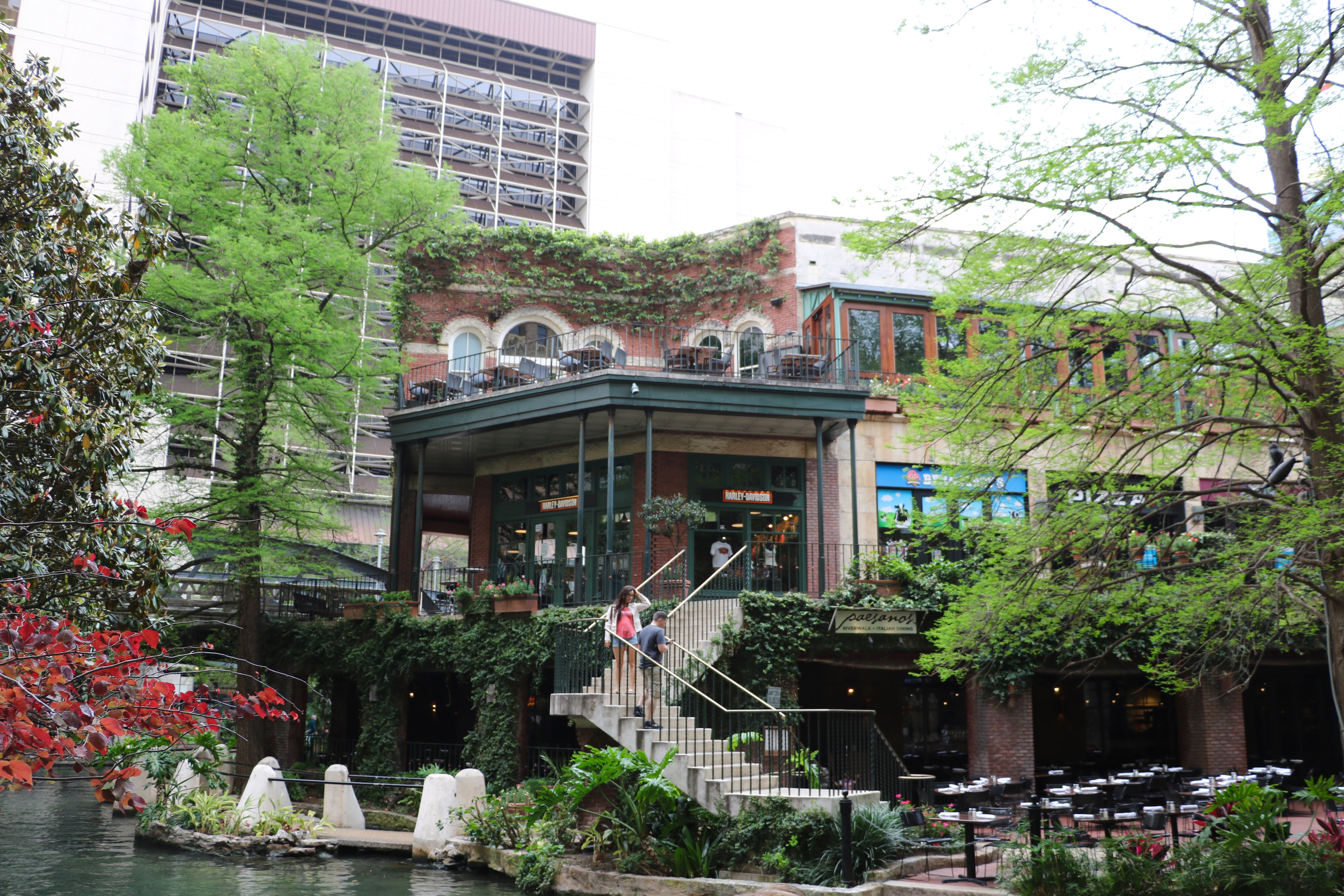 Caroline wurde wieder vollgepackt und wir machten uns auf nach San Antonio. Geparkt haben wir bei unserem Motel und sind dann in die Stadt spaziert. Unser Ziel war der Riverwalk. Ein unterirdisches grünes Paradies, das sich vom sonst eher dreckigen und trüben restlichen Teil der Stadt abhebt. Finde ich sehr empfehlenswert und ein wirkliches Highlight. Hier gibt es außerdem verschiedenste Restaurants und Lokale. Bei einem Mexikaner aßen wir dann Nachos, Enchilladas und Quesadillas…