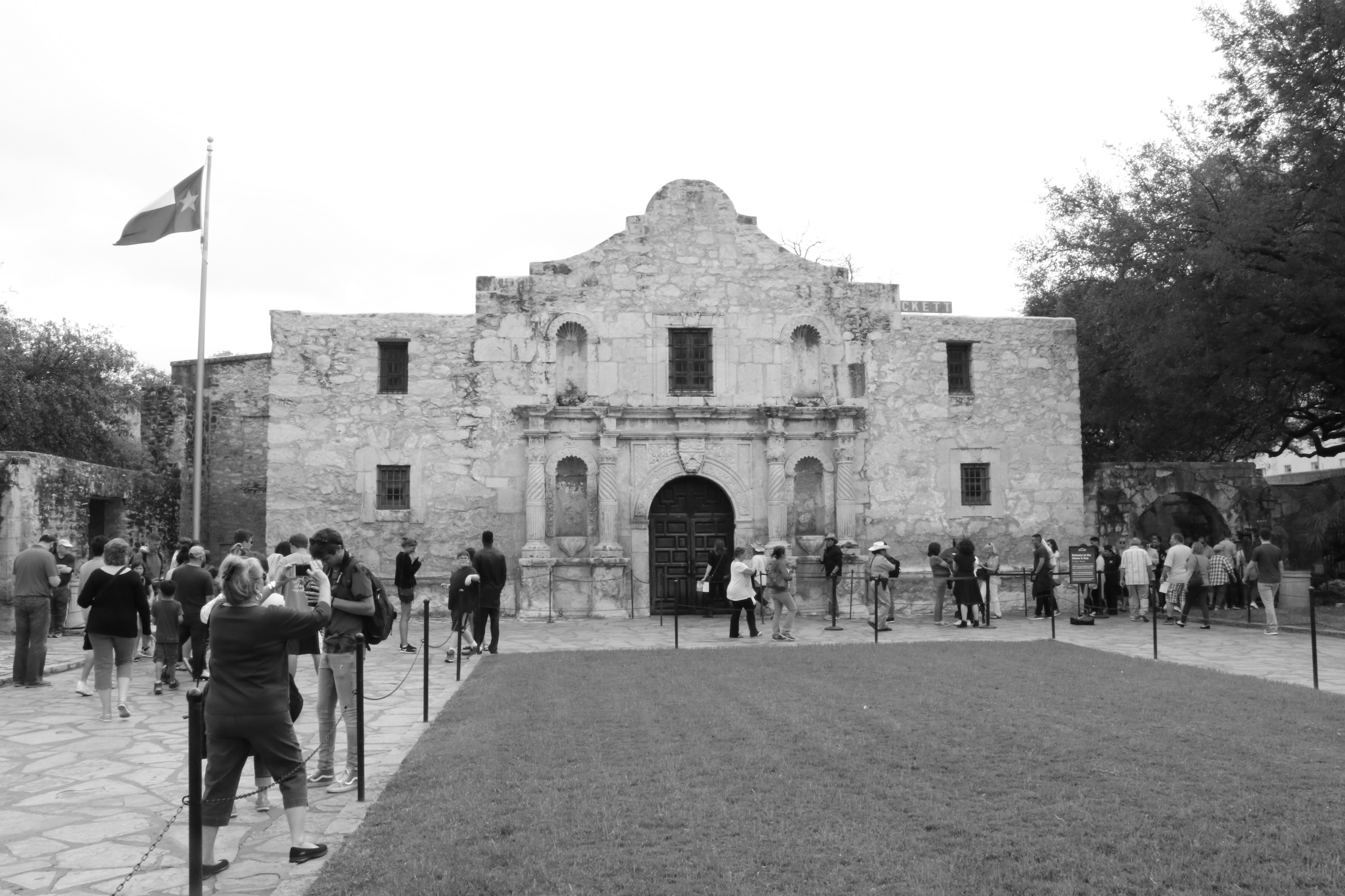 Nach diesem deftigen Mittagessen sind wir ein bisschen in der Stadt herumgewandert. Berühmt ist San Antonio für „The Alamo„, ein Fort aus der Zeit des Texanischen Unabhängigkeitskrieges. Es ist das in Texas meist besuchte Wahrzeichen, das wir uns aber nur von außen ansahen.