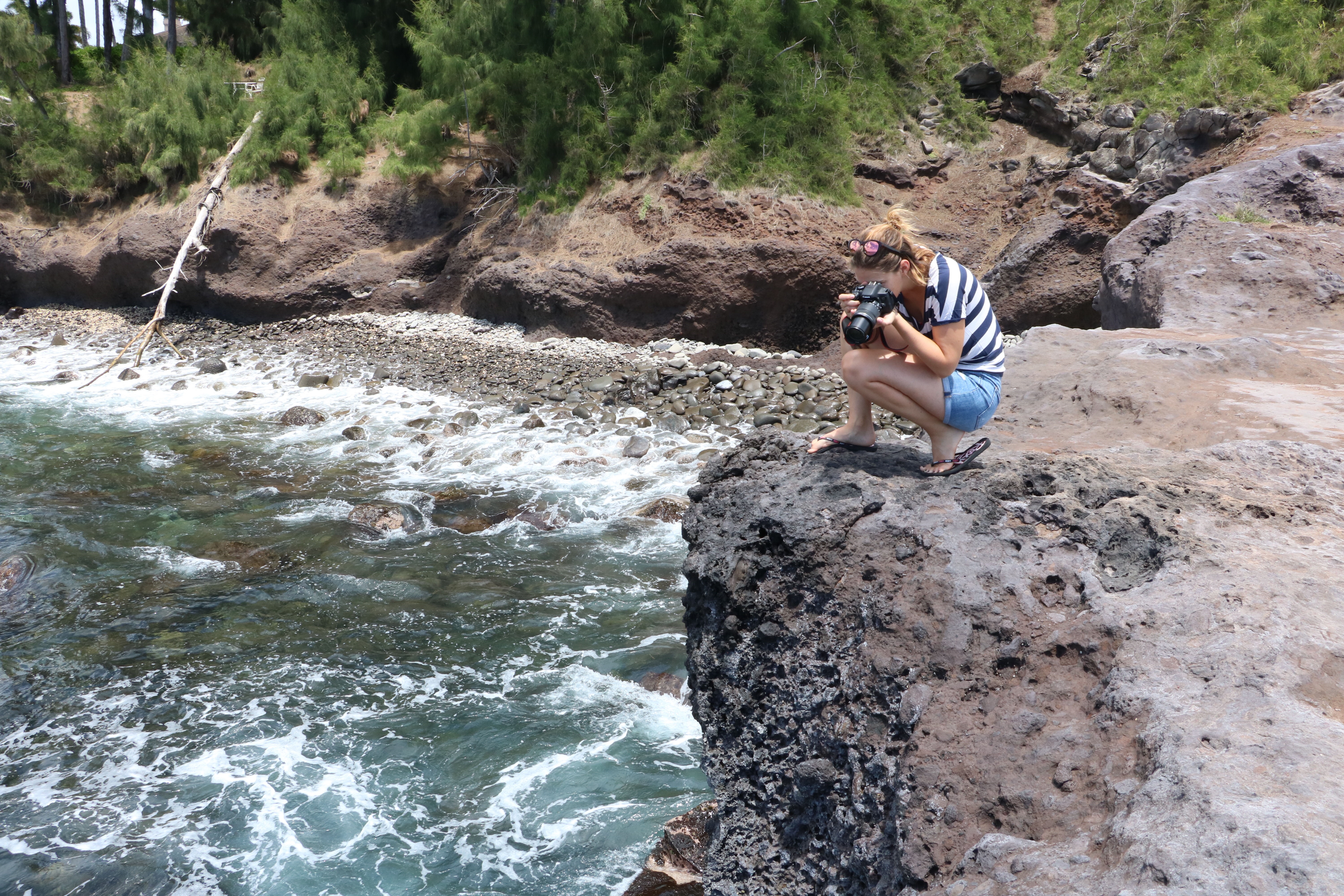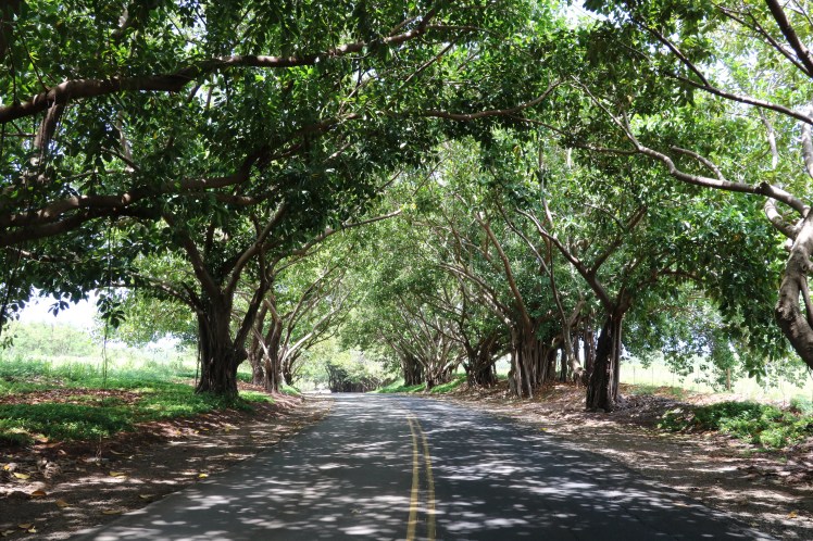 An einem Tag fuhren wir die berühmte „Road to Hana“, einer sehr kurvenreichen Straße bis nach Hana entlang. Wir staunten nur über diese Vegetation. Diese hohen überwucherten und verwachsenen Bäume und Bambusse, strahlendste Blumen und dichte Urwaldsträucher erinnerten mich nicht nur einmal an die Szenerie vom Film Avatar. (Wie passend, dass ich ihn am Flug von LA nach Kahului ansah…)