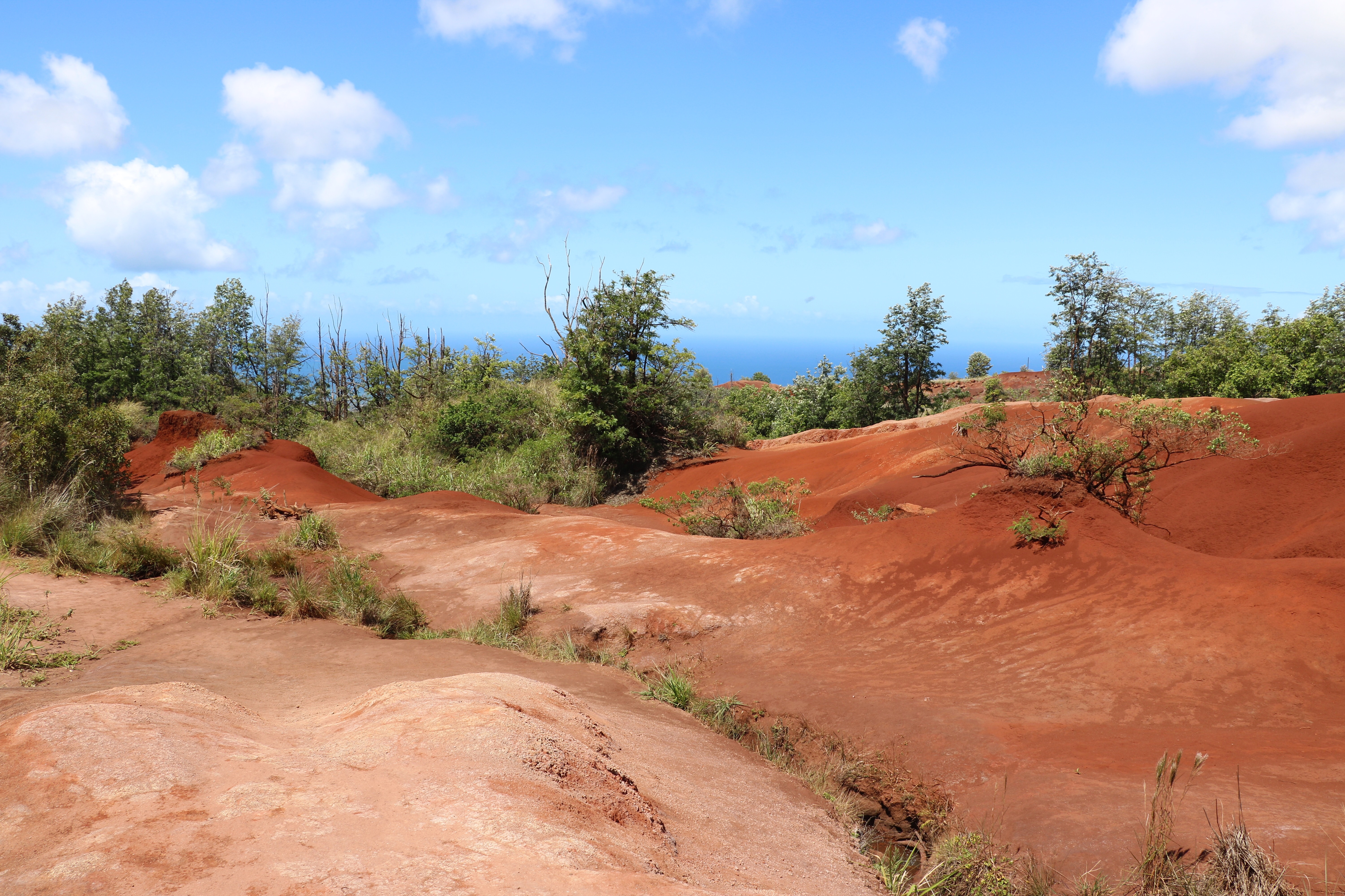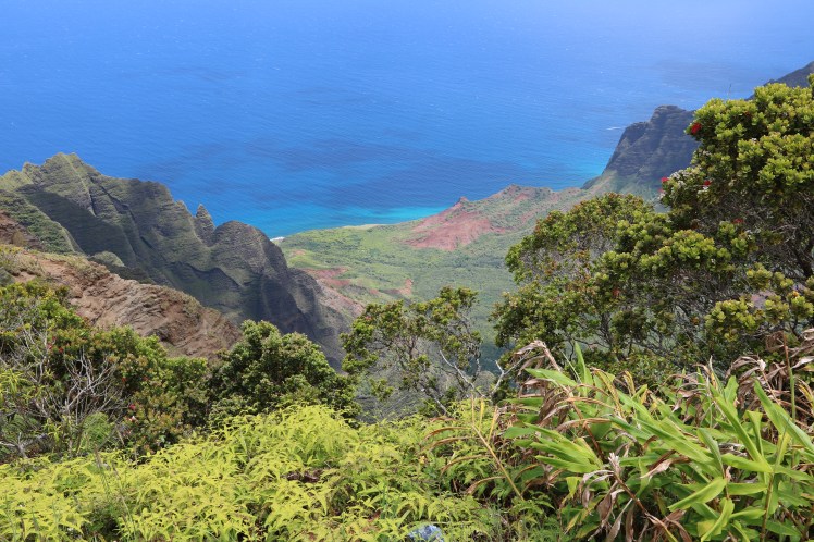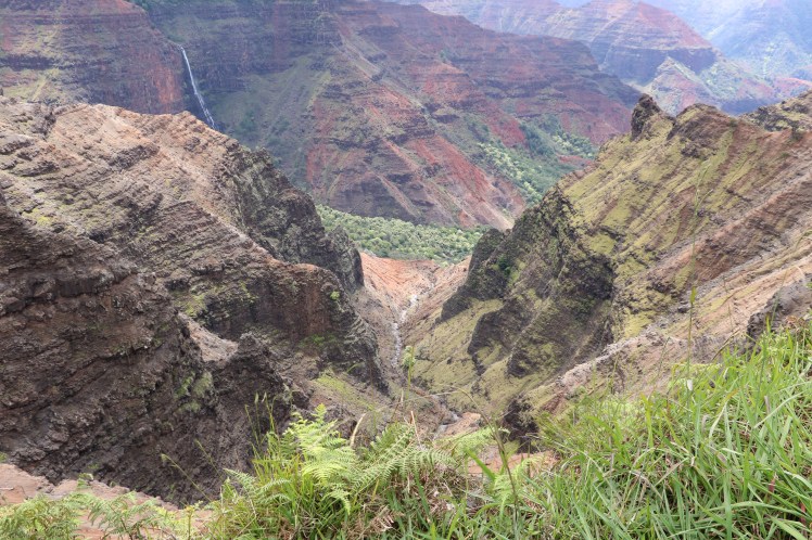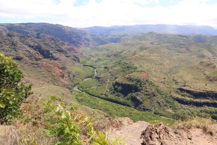 Kauai ist eine wunderschöne Insel mit (ebenfalls) atemberaubender Natur. Einen kleinen Vorgeschmack für unsere Rundreise, die morgen startet, gab uns der Grand Canyon des Pazifik: auf dieser Insel gibt es den Waimea Canyon State Park. Mit dem Auto ist er leicht zu erreichen und die Natur enttäuschte uns wieder einmal nicht. Roter Stein, Pflanzen, die ich noch nie gesehen habe und eine Aussicht auf das Meer, die dir die Luft nimmt. Das ist übrigens einer der nässesten Orte, die es auf der Welt gibt. Es hat dann auch ein bisschen zu regnen begonnen, als wir gerade mit unseren Fotos fertig wurden!