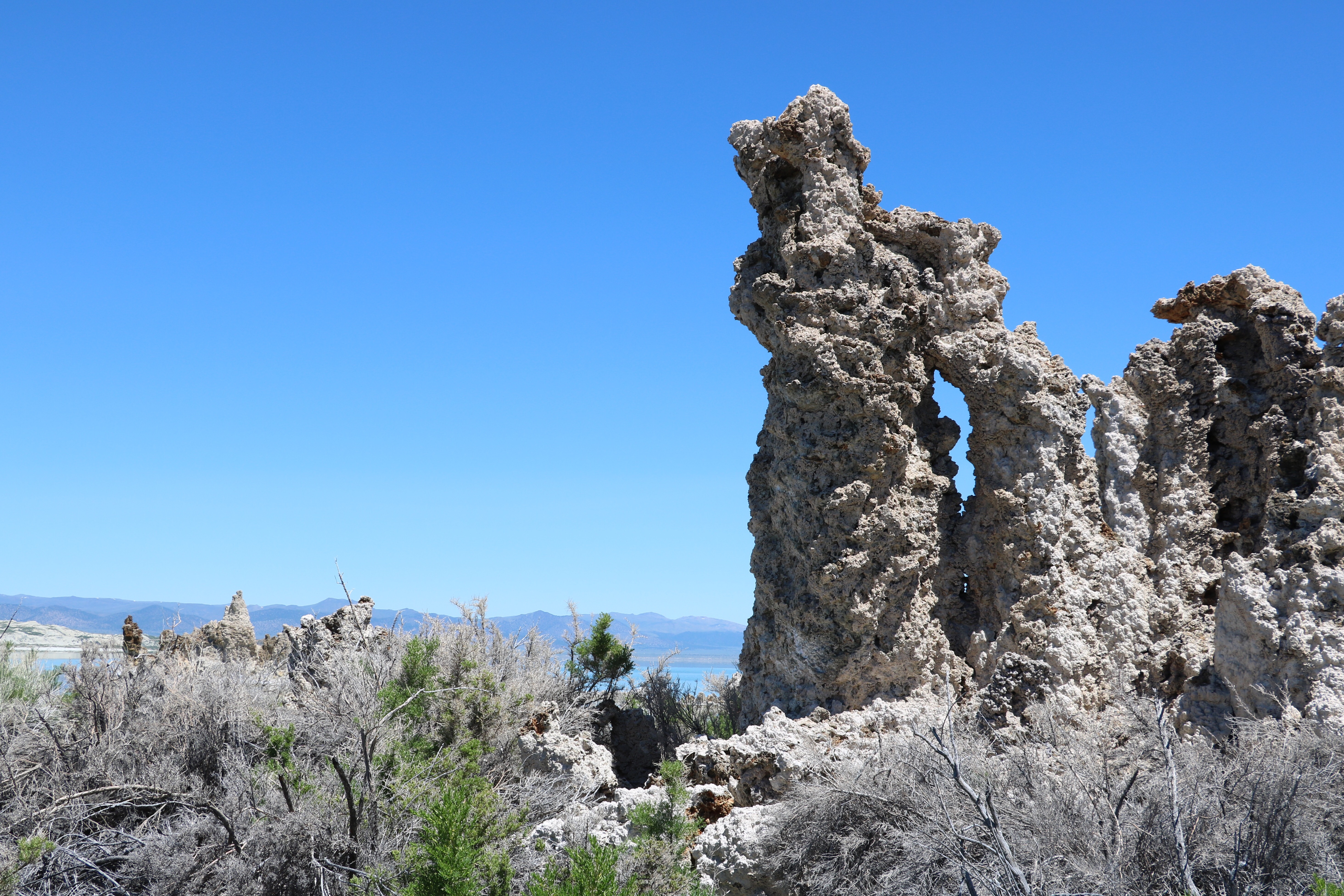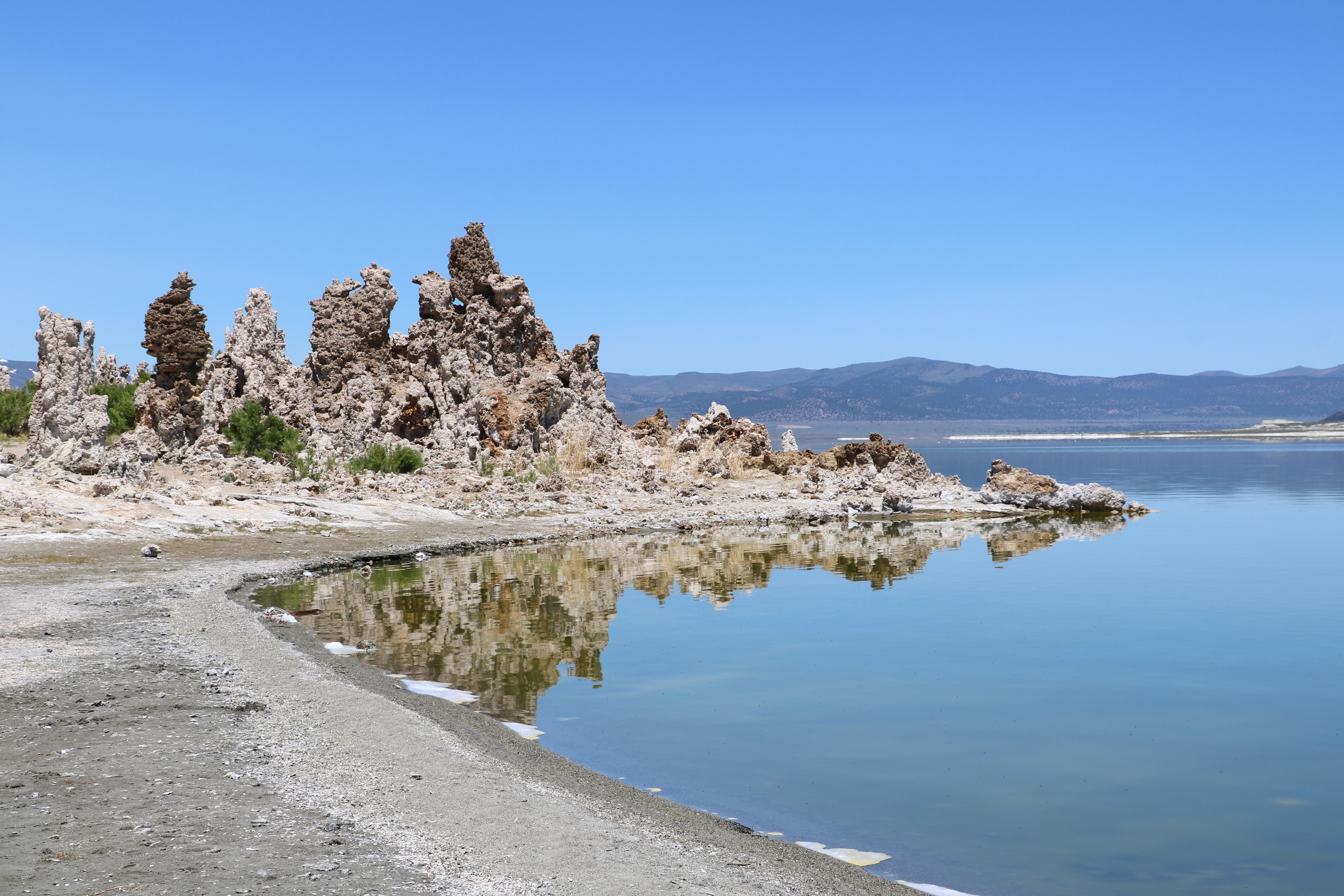 Unser nächstes Ziel war der Mono Lake, ein Natronsee (das heißt er ist salzig und alkalisch zugleich). Dafür fuhren wir Richtung Norden und schon bald erreichten wir dieses idyllische Plätzchen. Wir waren unter anderem auch beim Visitor Center, aber am besten fährt man einige Meilen östlicher vom Visitor Center aus, bei der „South Tufa Area“. Hier findet ihr nämlich die Stalagmiten im Wasser, wie man sie von den kitschigen Bildern im Internet findet. Ein richtiges Fotoparadies… vor allem die im Hintergrund leicht angezuckerten Berge verschönern jedes Bild.