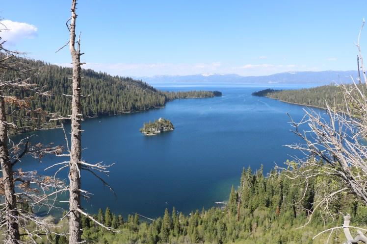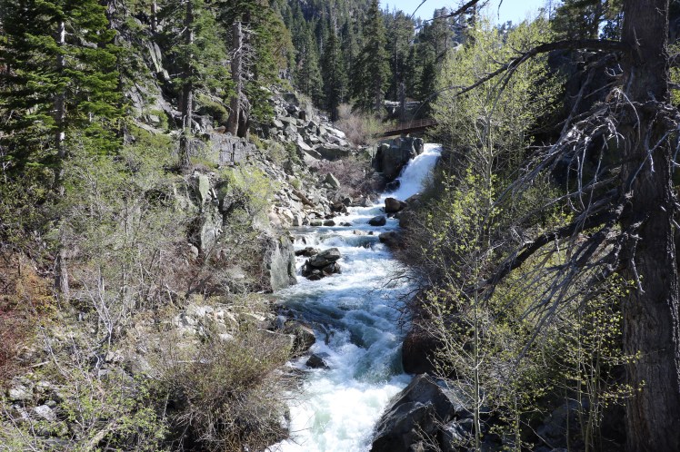 Jedenfalls waren wir dann schon nach einem Fingerschnippen beim Lake Tahoe angekommen. Wir hatten leider nicht allzu viel Zeit dort, sonst hätten wir den ganzen See umrundet. So haben wir uns das Beste herausgepickt. Wir fuhren direkt zum Emerald Bay und dort die steile kurvige Panoramastraße hinauf bis zu den Eagle Falls. Dort haben wir den kurzen Wanderweg bis zum Wasserfall gemacht und die Natur und das wunderschöne Wetter genossen. Genau zu dieser Jahreszeit rinnt hier viel geschmolzenes Gletscherwasser herunter und es bilden sich eben diese kleinen Wasserfälle und Bäche.